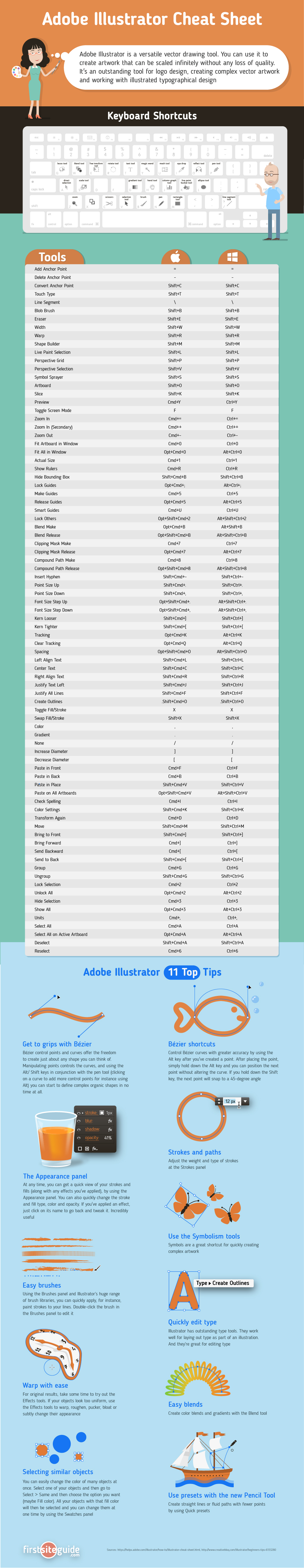 I posted an Adobe Illustrator cheat sheet a while ago, but…yeah, that was a while ago.  I got contacted by Anja from firstsiteguide.com who lead me to an updated Adobe Illustrator cheat sheet.  That was real nice of her.  Enjoy!