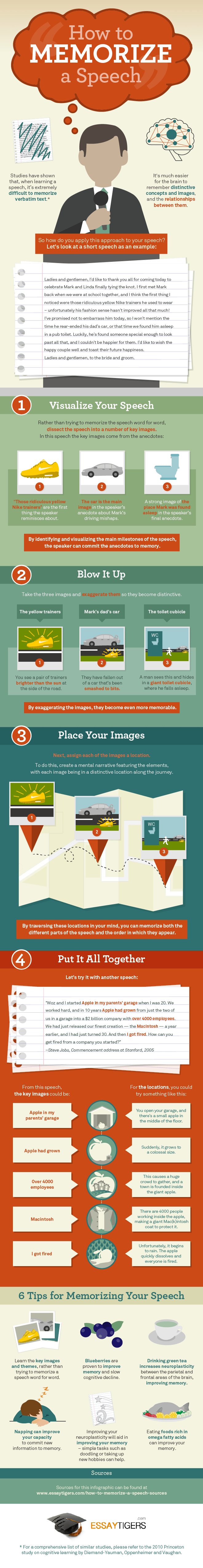 Another great Infographic from the folks at Daily Infographic! This time it’s tips and tools to help you memorize a speech. Check it out below or at Daily Infographic.